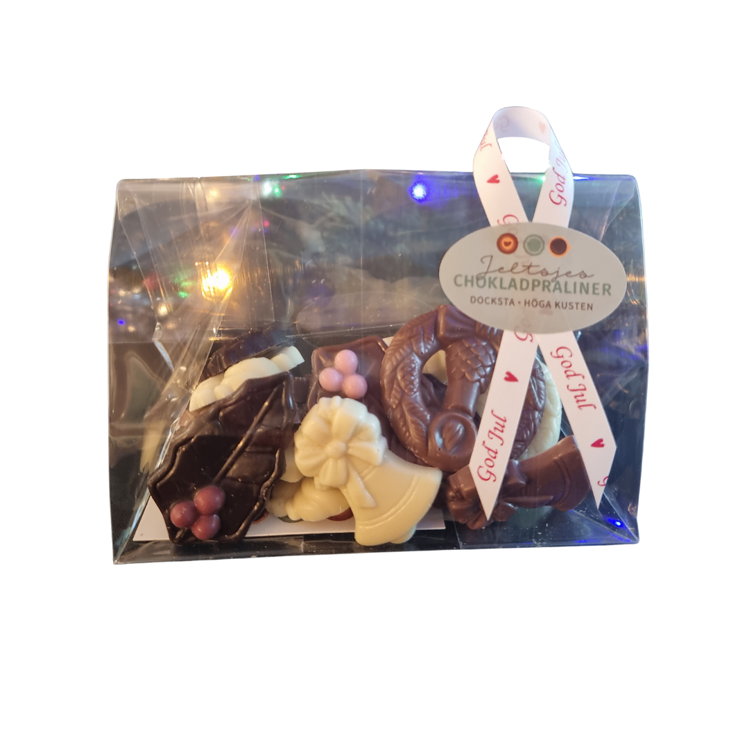 En festlig pÄse fylld med handgjutna chokladbitar i julens anda!