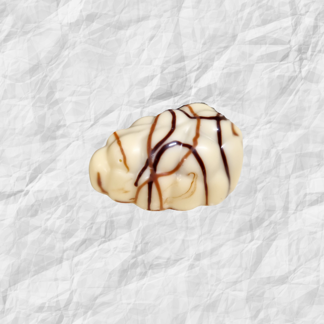Vit choklad pralin fylld med vit chokladganache och hjortron pâte de fruit. En fin kombination av rik choklad och fruktig sötma från hjortron.